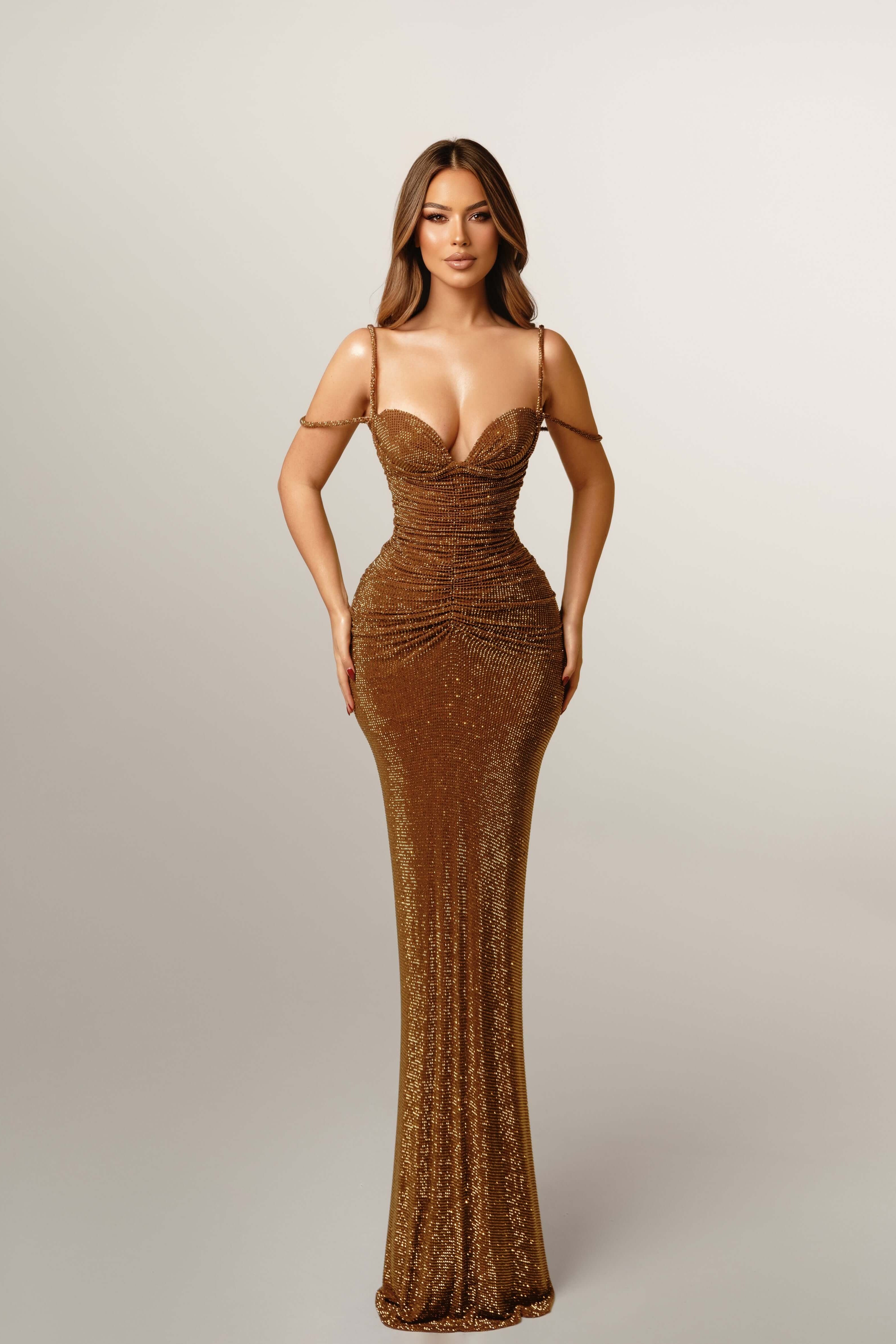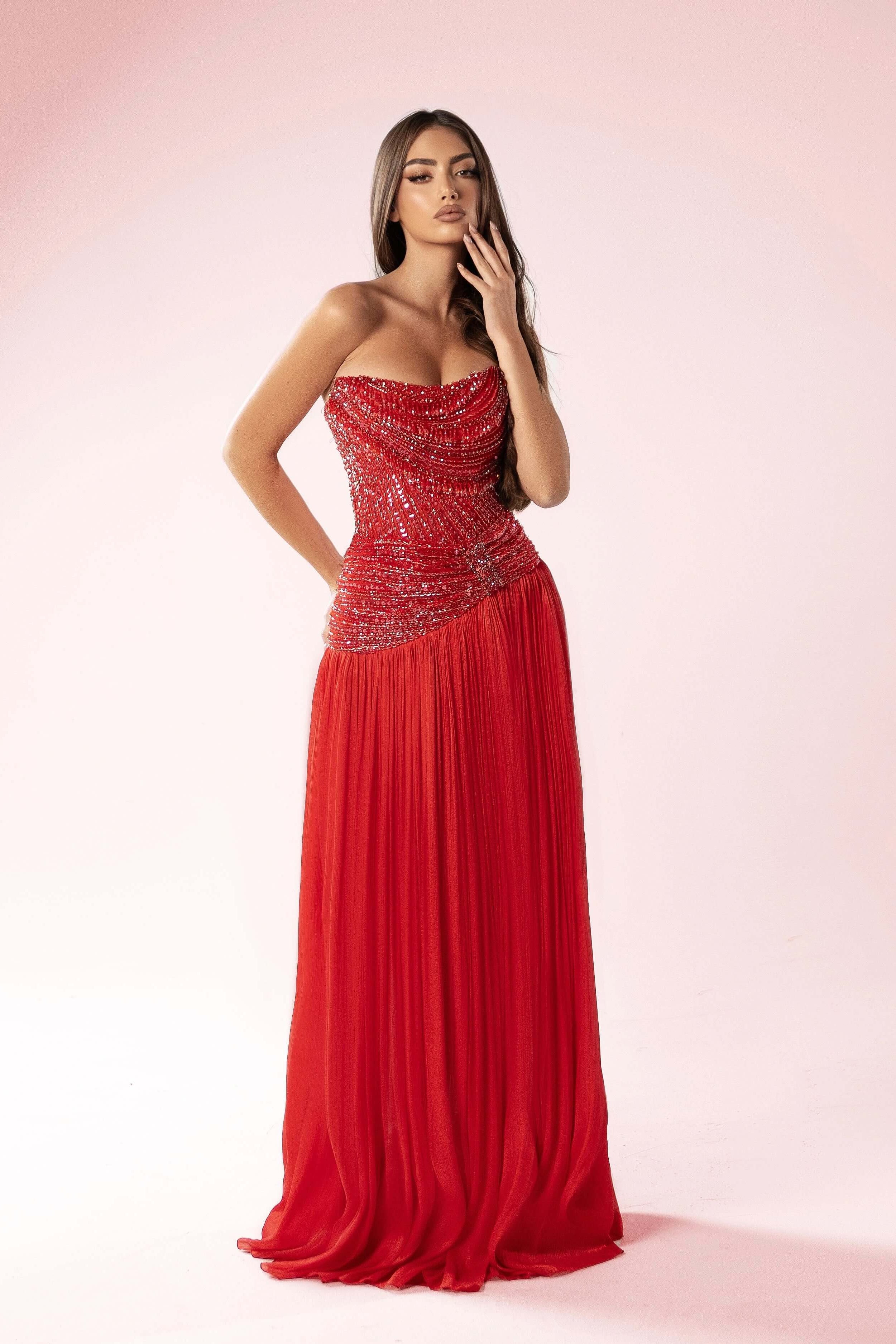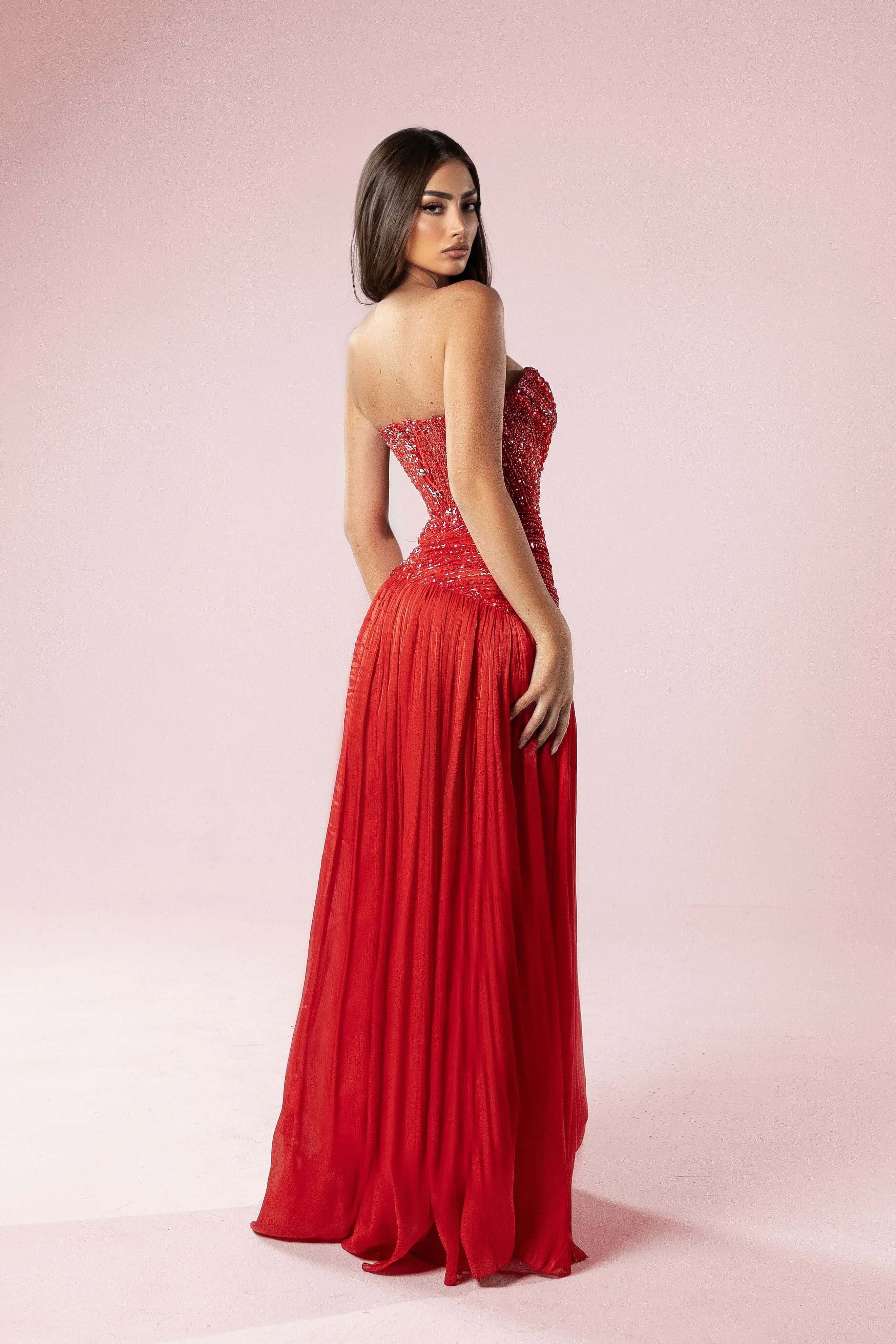 Make a lasting impression in this glamorous evening gown, designed with a structured corset bodice and a flattering sweetheart neckline